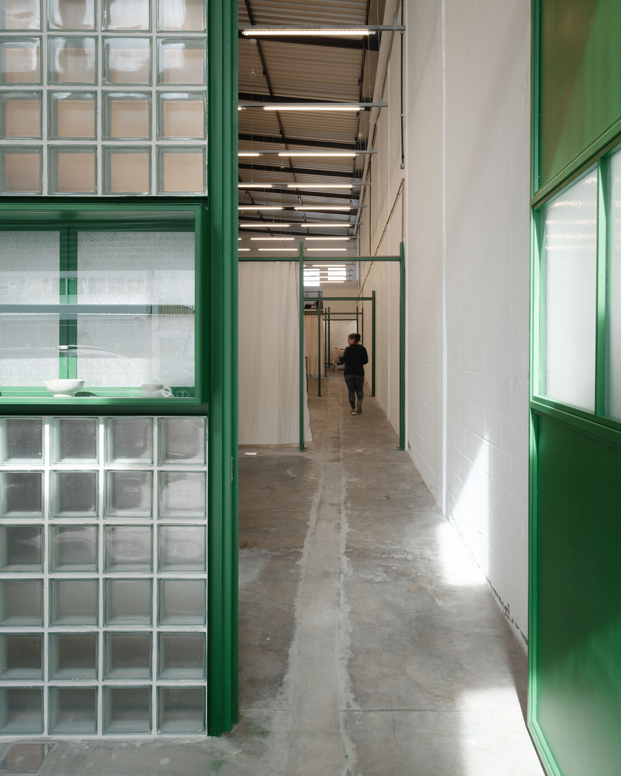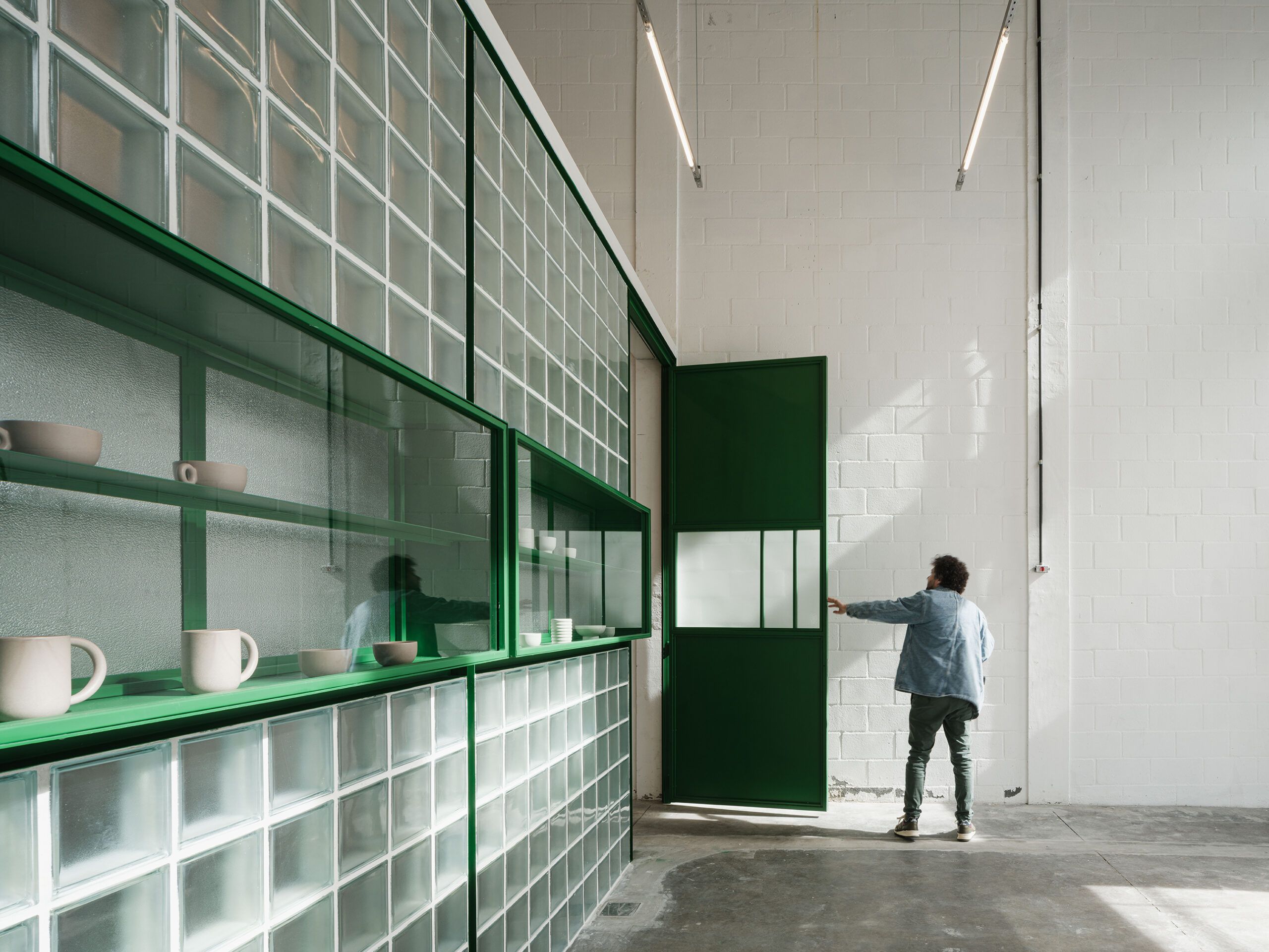 O ponto de partida do projeto foi a demanda de criar em São Paulo um espaço inteiramente dedicado ao ensino de cerâmica. Em vez de adaptar um ateliê existente, as clientes buscaram um galpão que pudesse ser transformado desde o início em uma escola — com estúdios amplos, repletos de prateleiras, tanques, tornos, plaqueiras e mesas que permitissem diferentes atividades simultaneamente, além de infraestrutura adequada e boa acessibilidade.