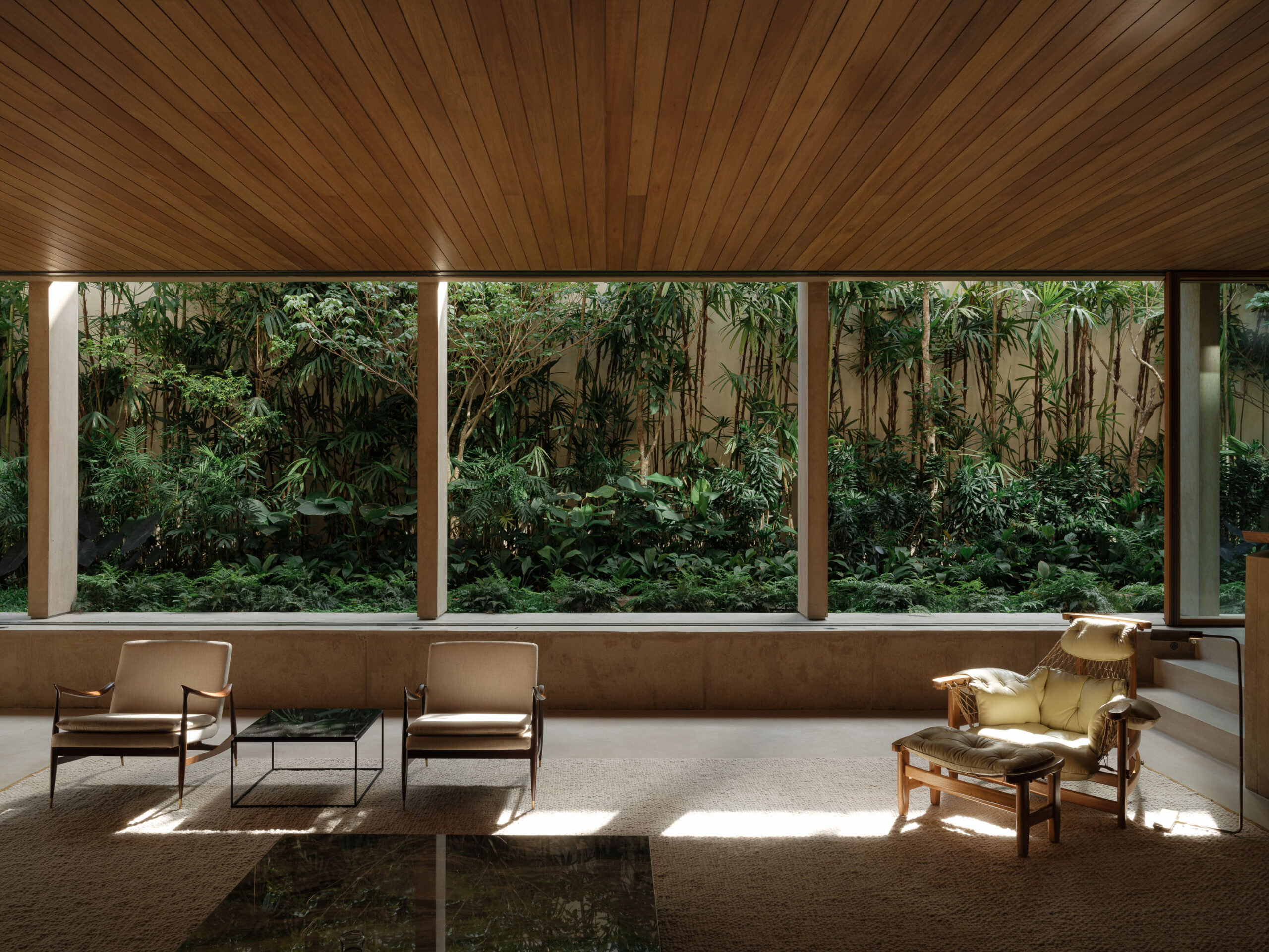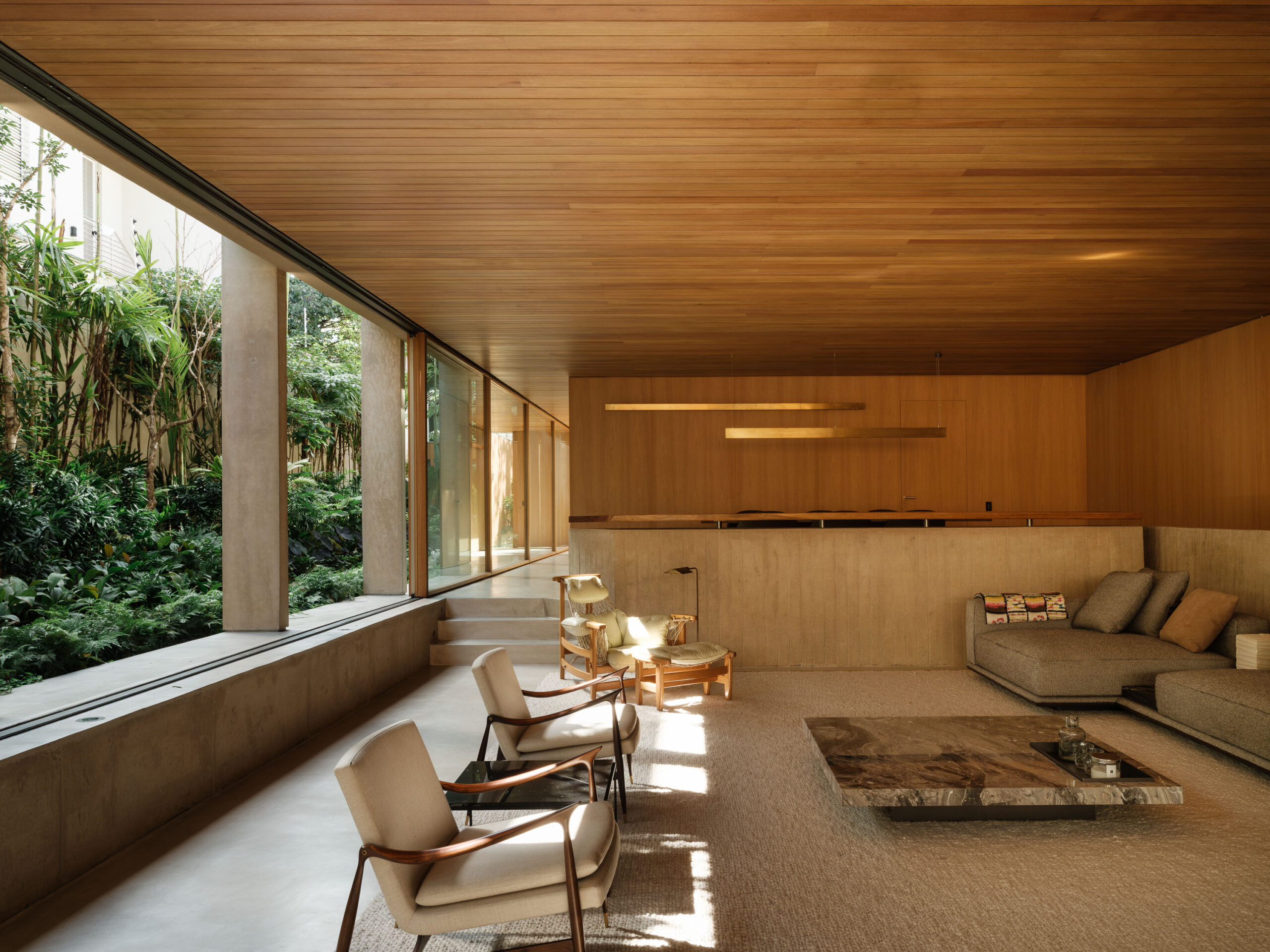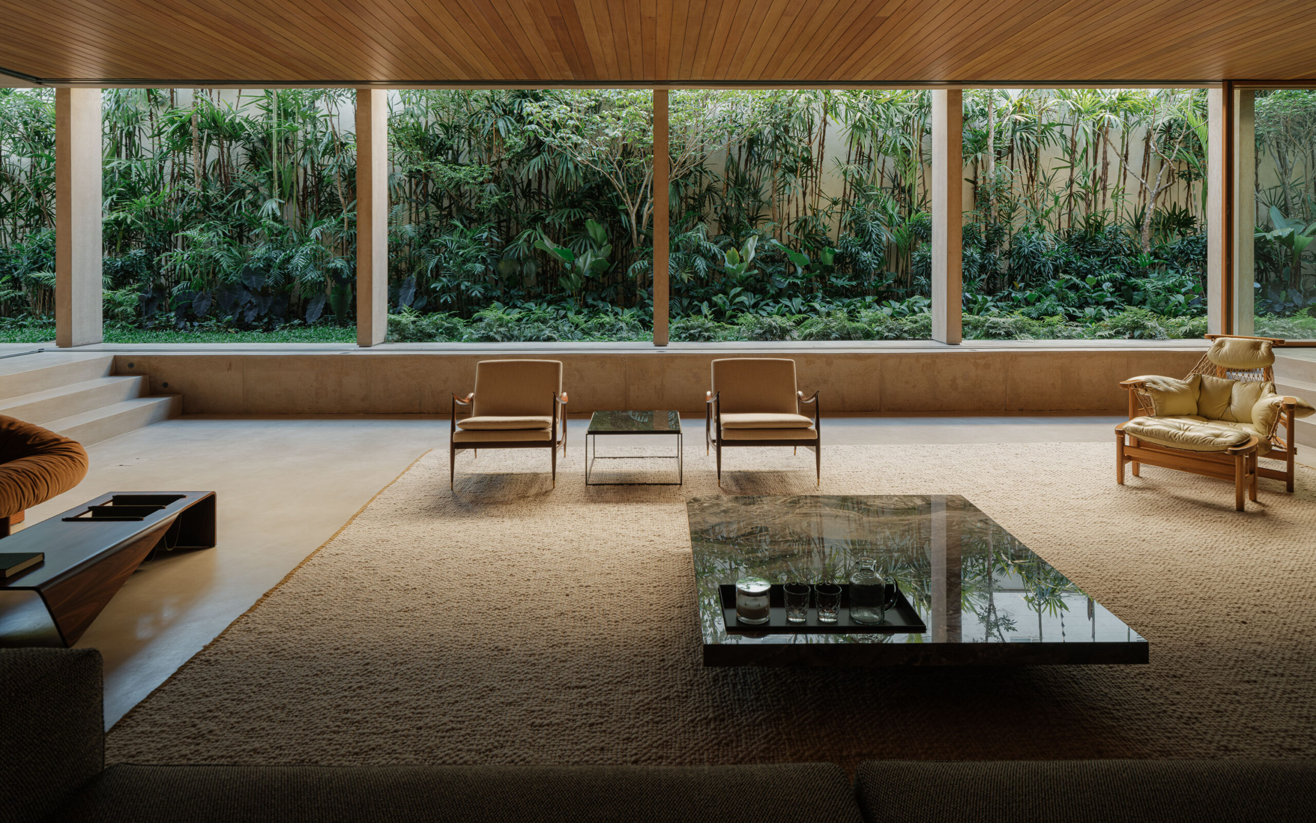 Sofá, tapete, mesa de centro e cadeiras de jantar: Atrium, Minotti